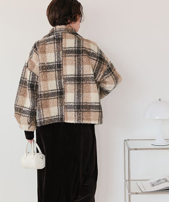 チェックボアショートジャケット/アウター