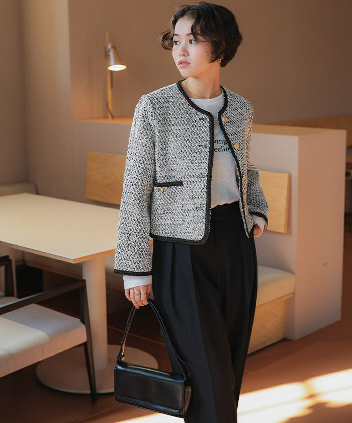 ・クラシカルなツイード調素材で上品な佇まいを演出