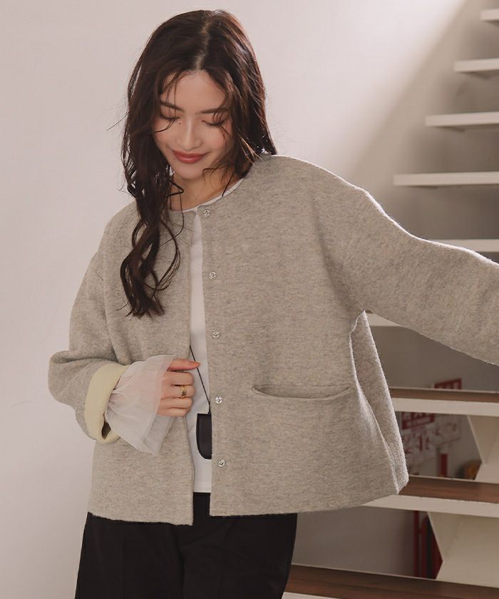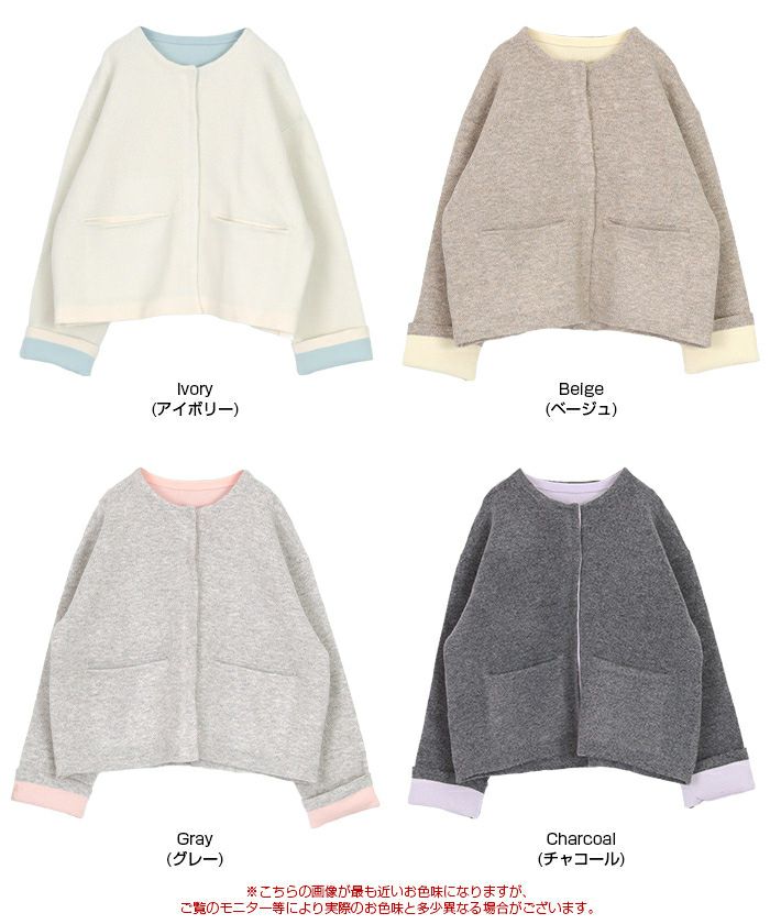 ・表の編地はベーシックなカラー展開で着やすく、色々なスタイリングに入れられる万能アウター