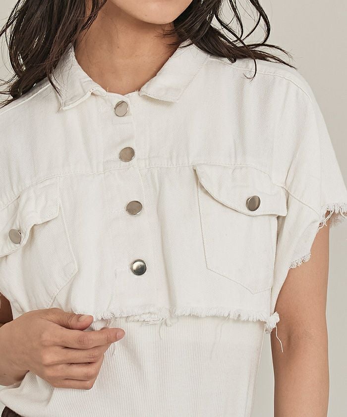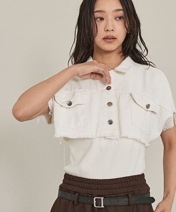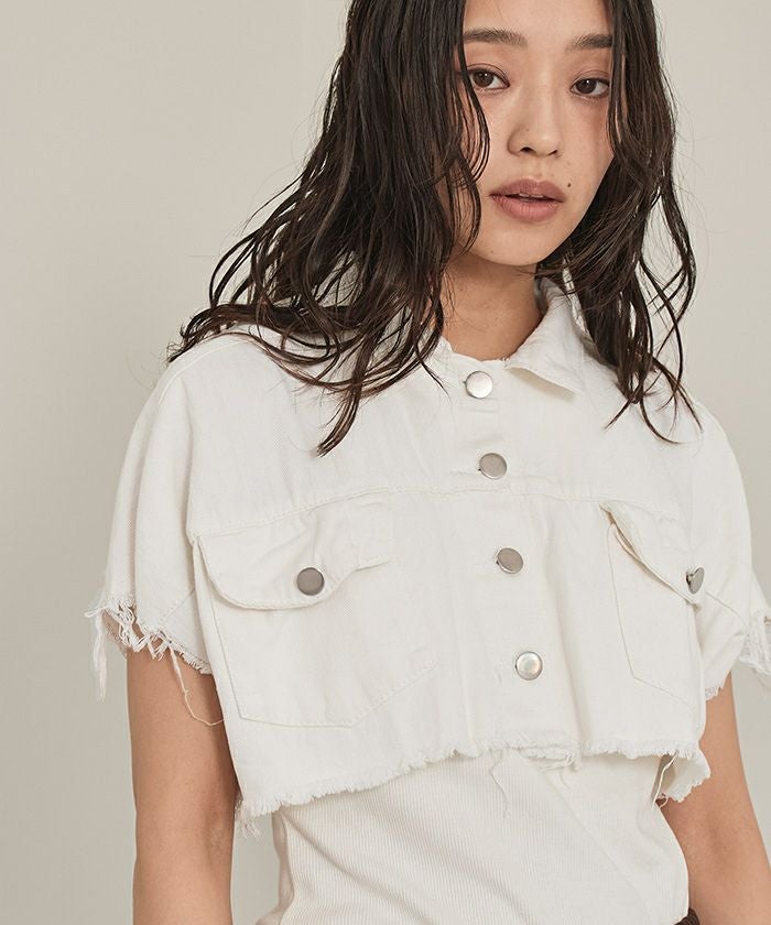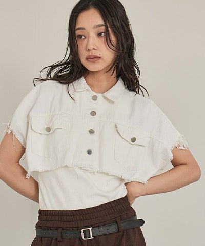 半袖クロップドデニムジャケット【miette ミエット】【メール便可/100】