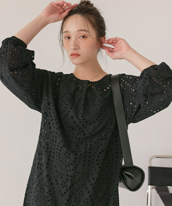・コットン刺繍レース素材が可愛いワンピース。