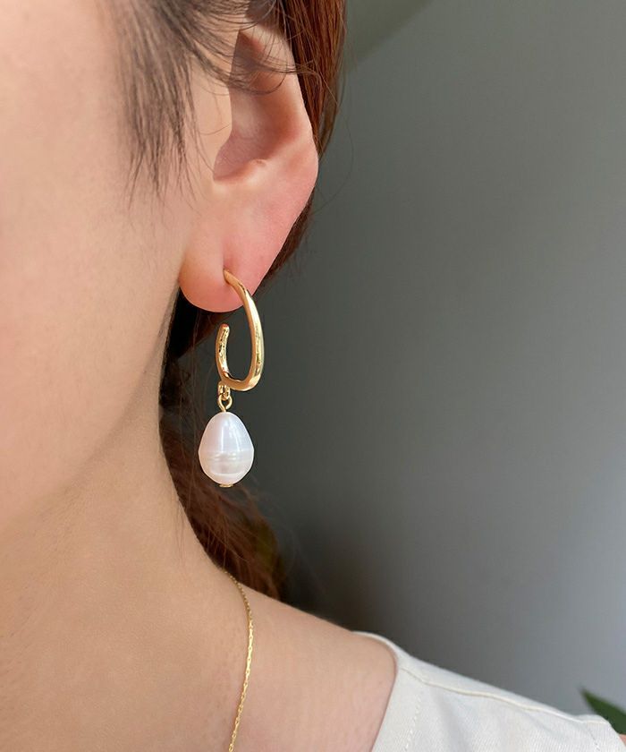 ・存在感のあるパールがアクセントをプラスするピアス。