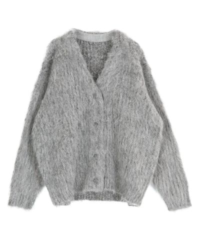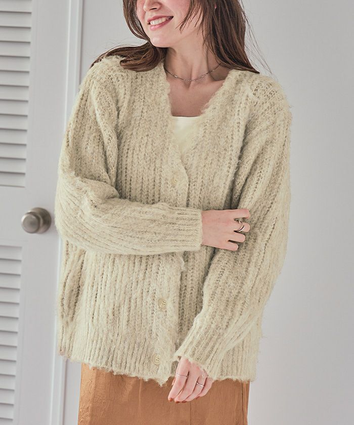 ・ふわっとしたモヘアライクの素材感が高見えするVネックニットカーディガン。