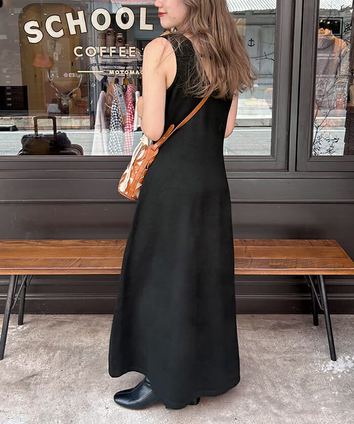 ・ノースリーブワンピースでレイヤードしても袖がごわつかないのが高ポイント。