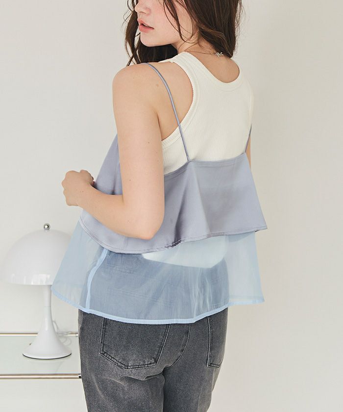 タンクトップやTシャツにONするだけで、イメージチェンジが可能で、素材のオーガンジーも涼し気で〇です。