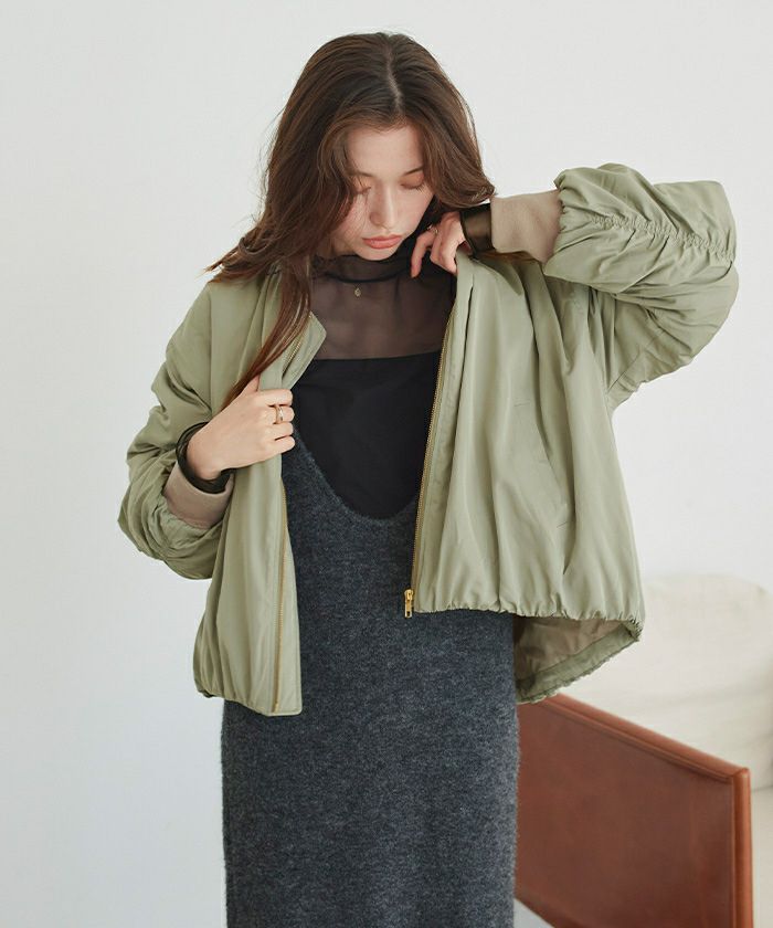 ネイビーを購入しました。ゴールドのファスナーと合わさりシックな色合いで素敵です。軽いのに暖かいし、裾を絞ると丸みを帯びたシルエットになり、とても可愛い。ただ届いた時のシワが酷くて、たたみジワだけではなく、どうやったらこんなにシワが付くのかというほどでした。なんとかアイロンで整えましたが、大変だったので、マイナス星1です。