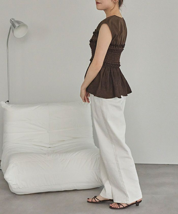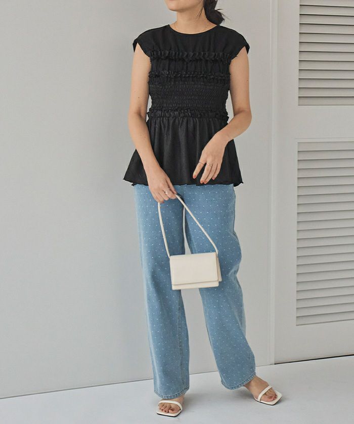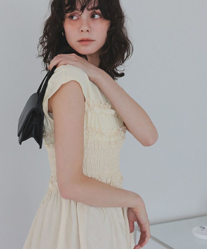 ・フリルの幅も変化をつけ、ウエストでキュッとフィットする、メリハリのあるシルエットに。