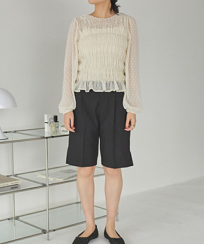 ・シャーリングディティールをボディに施した、軽やかなデザインブラウス