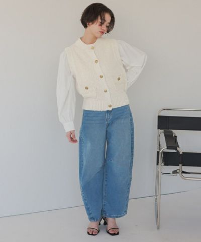 ゴールド釦ツイードニットベスト