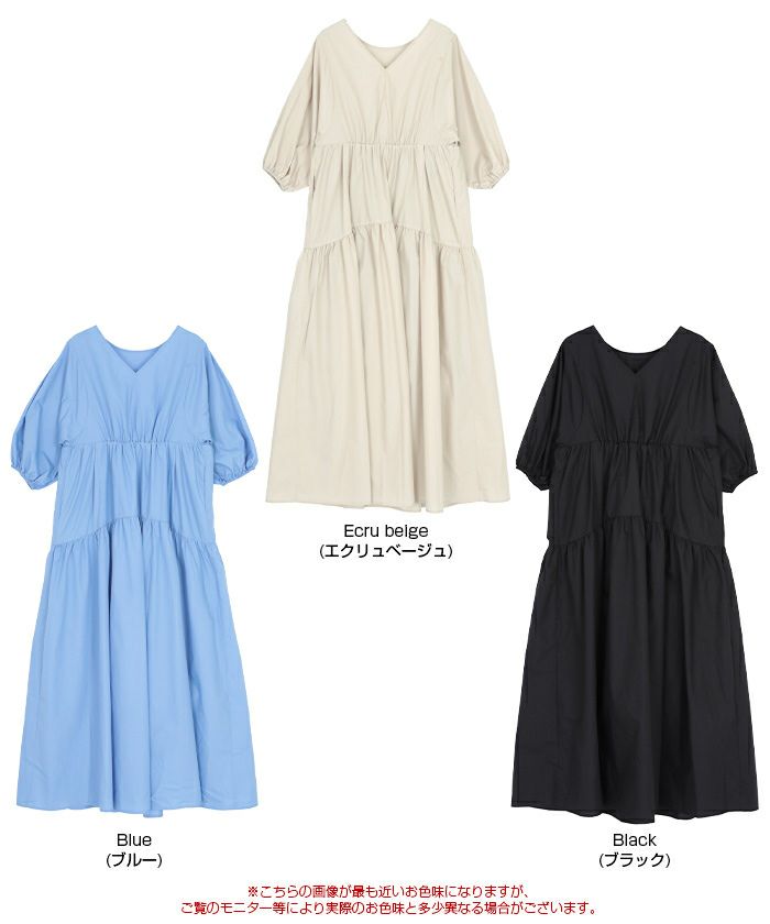 ・ウエストにギャザー切り替えをいれ、ボリューム・シルエットにメリハリが出るように設定したロングワンピース。