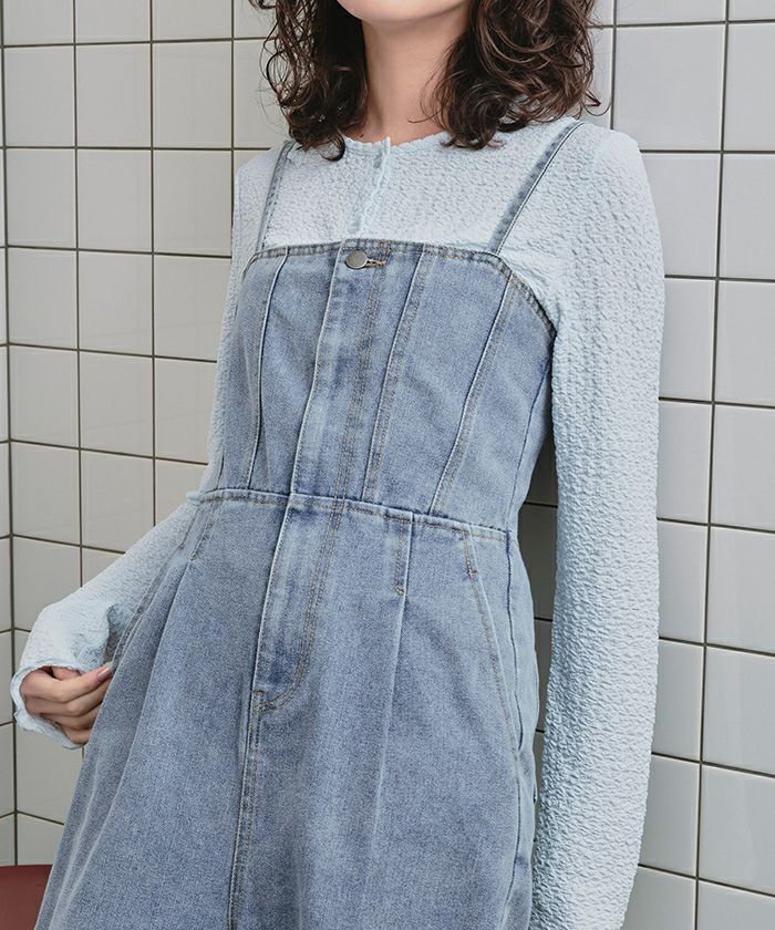 ・ビスチェデザインがトレンド感のあるデニム素材のオールインワン