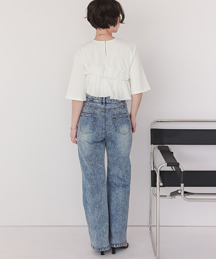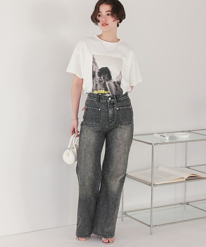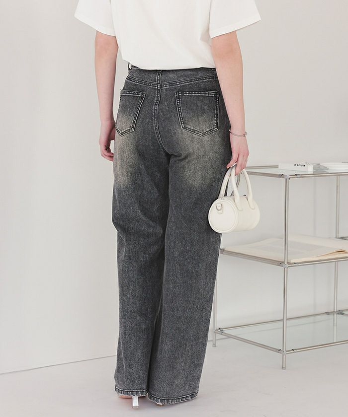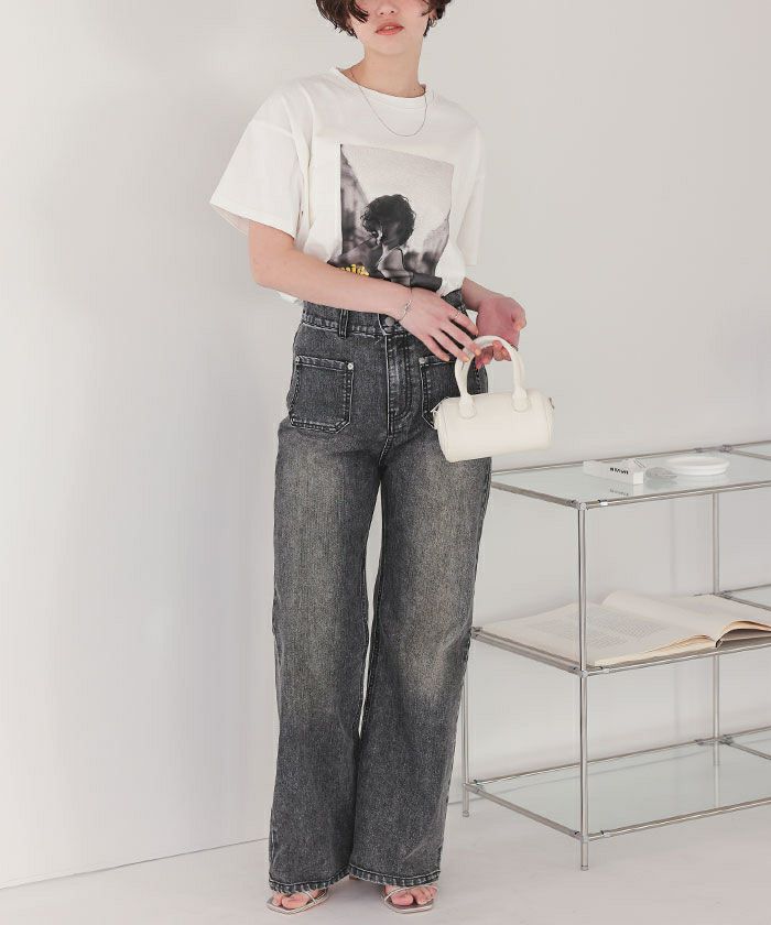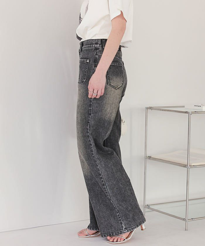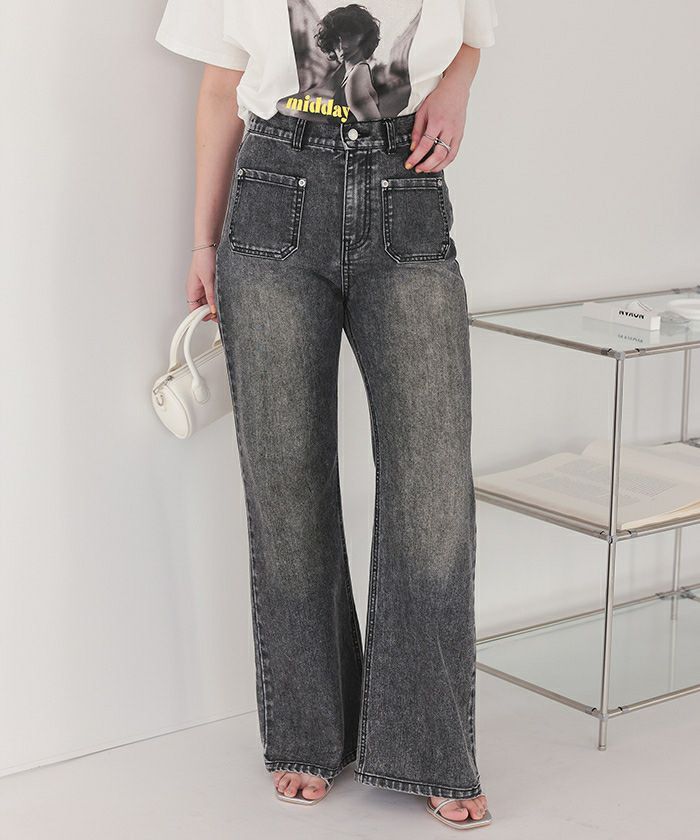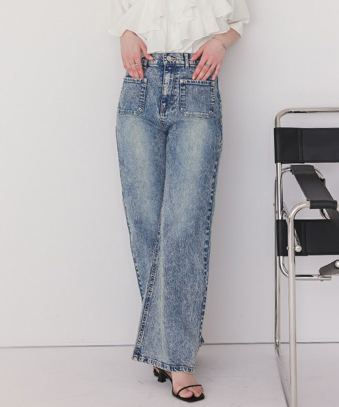 ・フロントの大きめポケットがアクセントの、トレンド感あるデニムパンツ。
