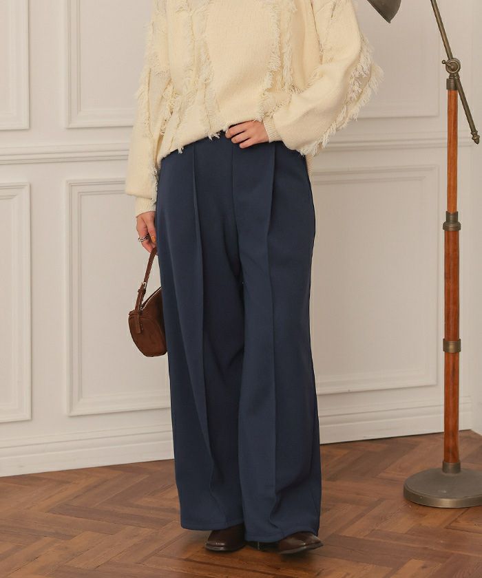 暖かさと上品さを叶える、裏起毛ワイドパンツ