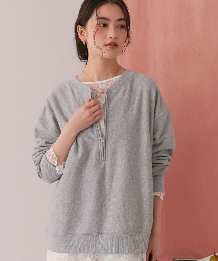 フロントジップゆるっとスウェットプルオーバー