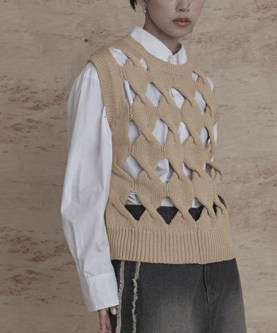 スラッシュケーブルニットベスト【miette ミエット】