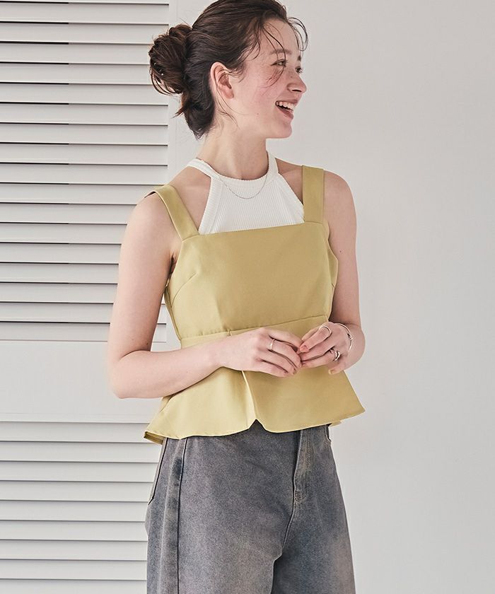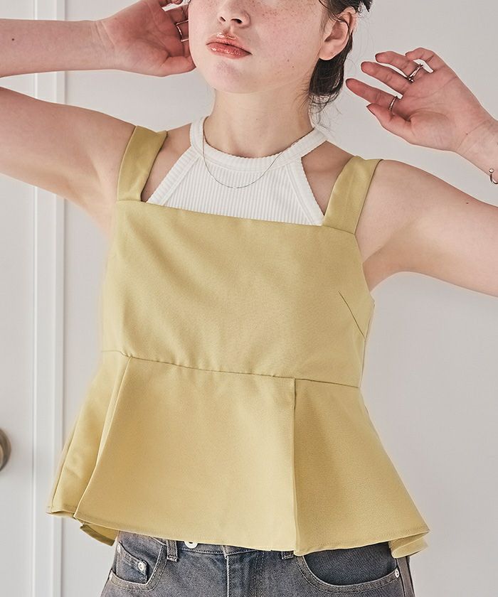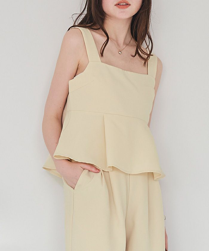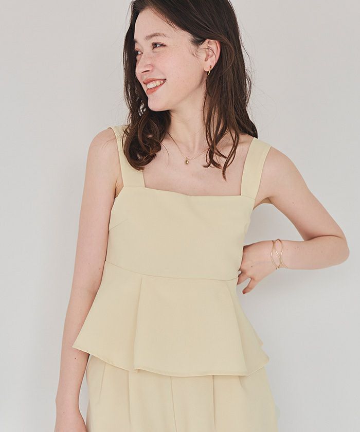 ・シンプルながらタック入りのペプラムデザインが大人可愛い。