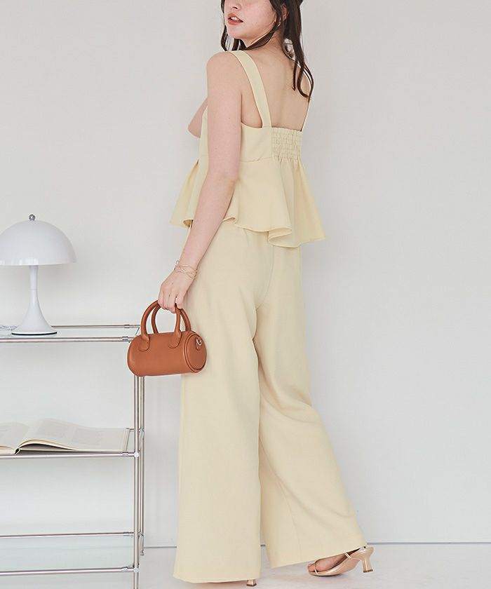 ・脚長効果が期待できるので、同素材のハイウエストワイドパンツとの組み合わせ着用もオススメです。