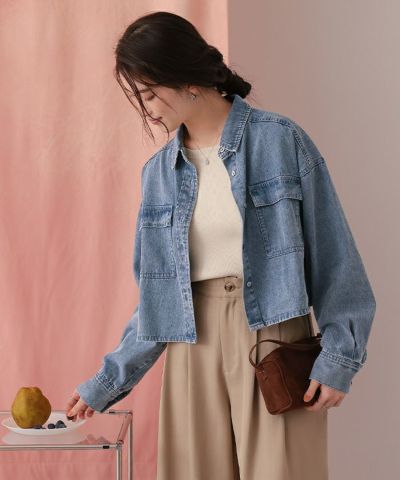 ・柔らかく軽やかなデニム素材で、ジャケット感覚でもブラウス感覚でも着られる万能アイテム