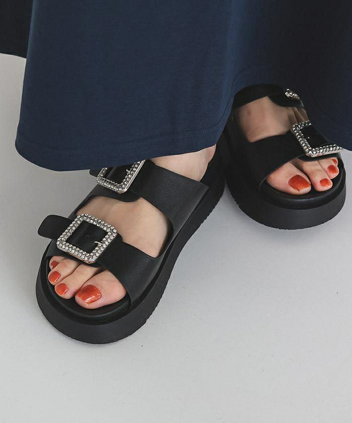 ビジューダブルベルト厚底サンダル