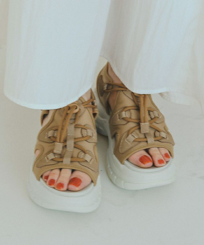 ドローストリングレースアップサンダル