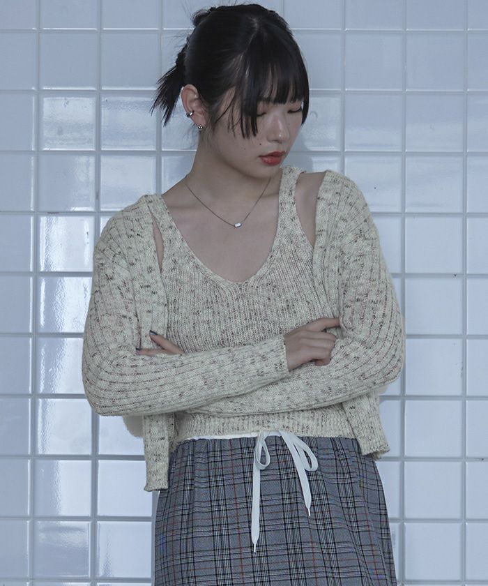他の画像を見る ▼【miette】【期間限定★SALE】 ミックスヤーンインナータンクセットニットカーディガン【miette ミエット】 通常価格 ¥ 4,389 価格 ¥ 2,194 税込 お気に入りに登録する