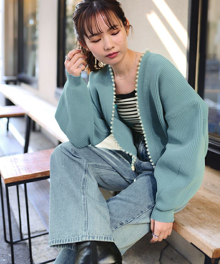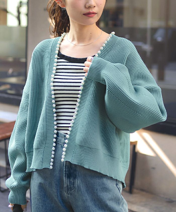 春先の寒い時に羽織るのに。161センチSサイズのブルーを購入!パールも高見えしてとってもかわいいです