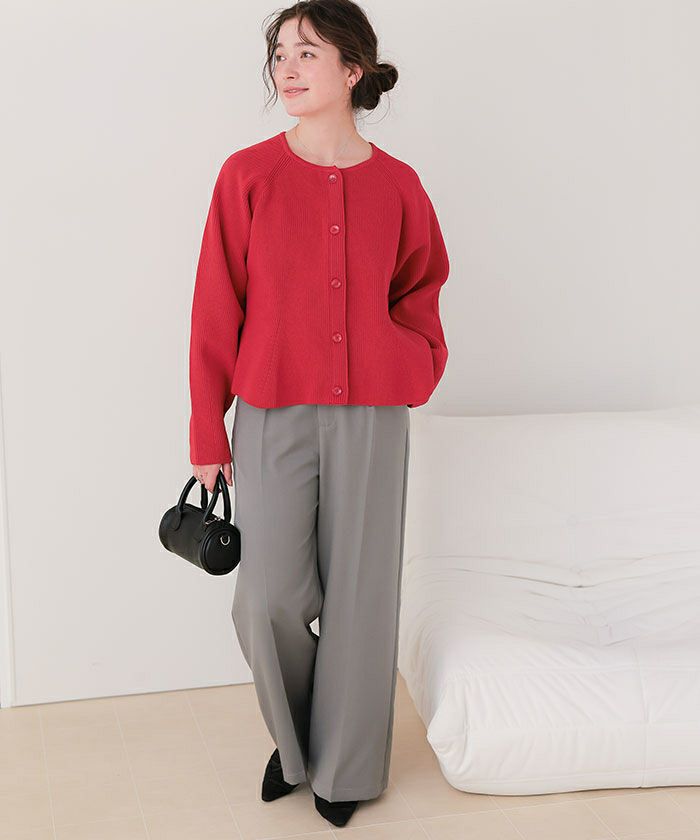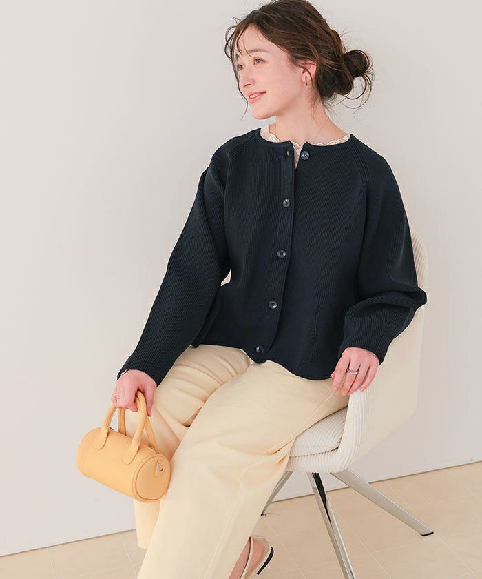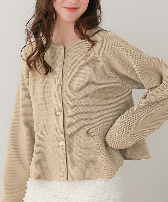 ・ペプラムシルエットが女性らしいニットカーディガン。