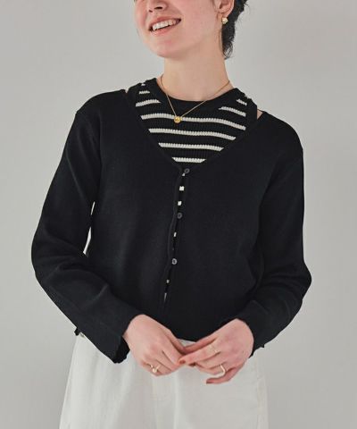 ・タンクトップはアメスリデザインでカーディガンを合わせると少し肩が見えるのもポイント。