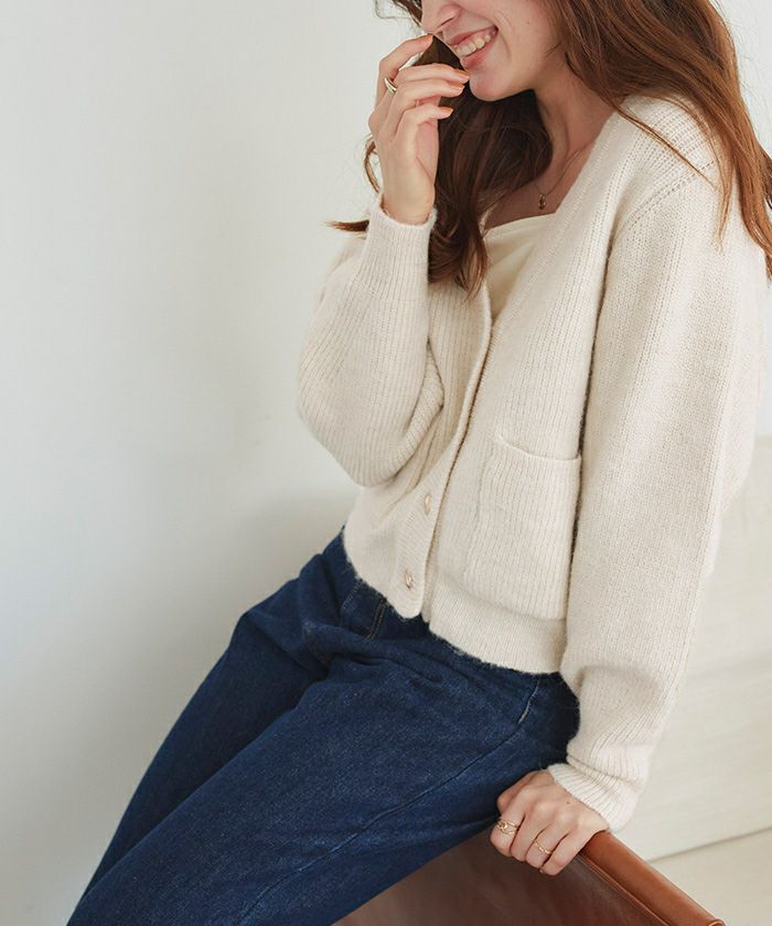ポケット付きVネックニットカーディガン