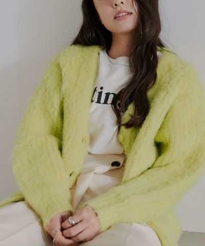 モヘアライクVネックシャギーニットカーディガン