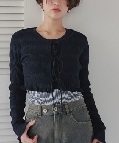 ・表面感のあるぽこぽこした編地見えがかわいいカーディガンと、別でもデイリー使いしやすいリブニットノースリーブトップスのセット商品です