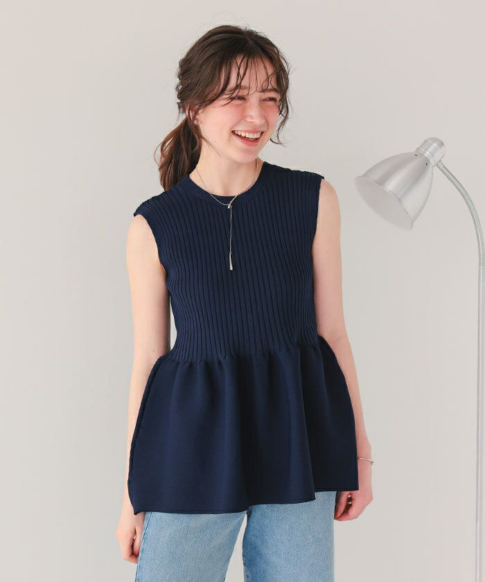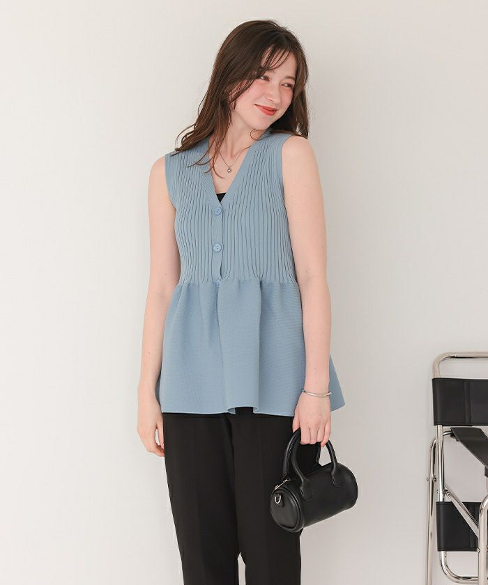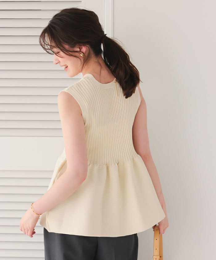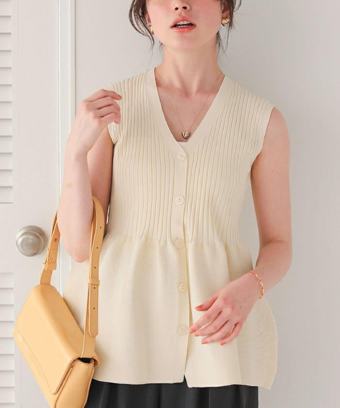 ・前後2way着用できる、ペプラムシルエットが女性らしいニットカーディガン
