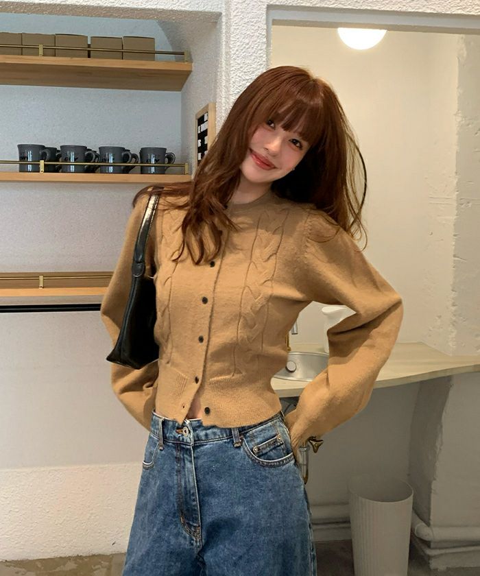 ケーブルデザインニットカーディガン