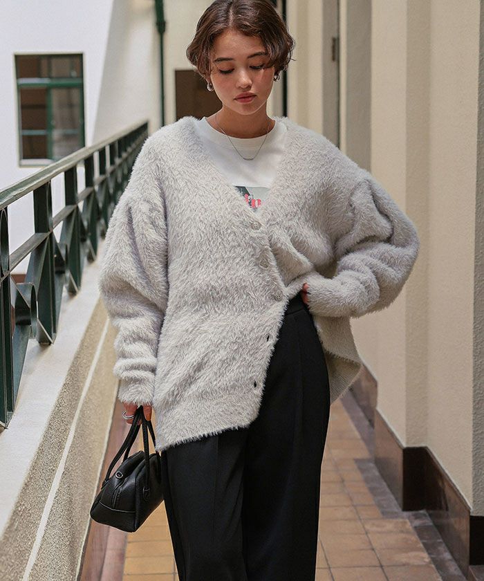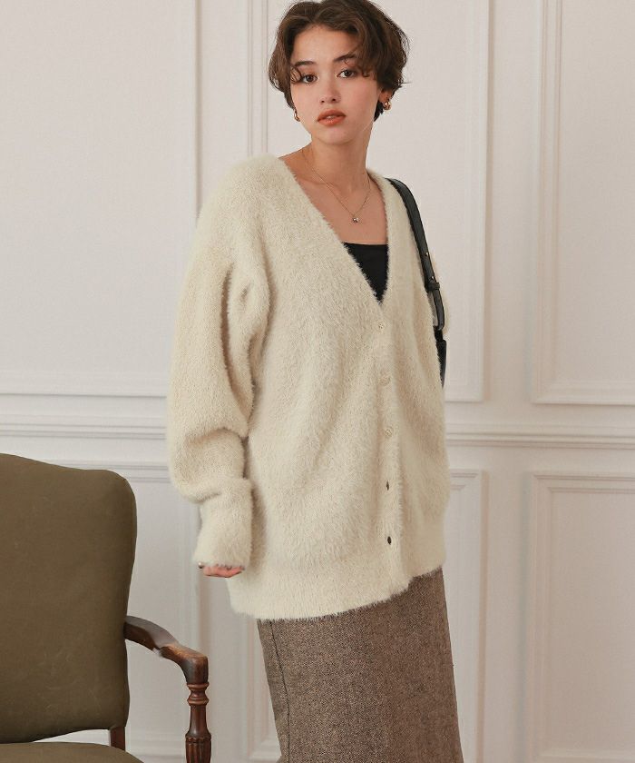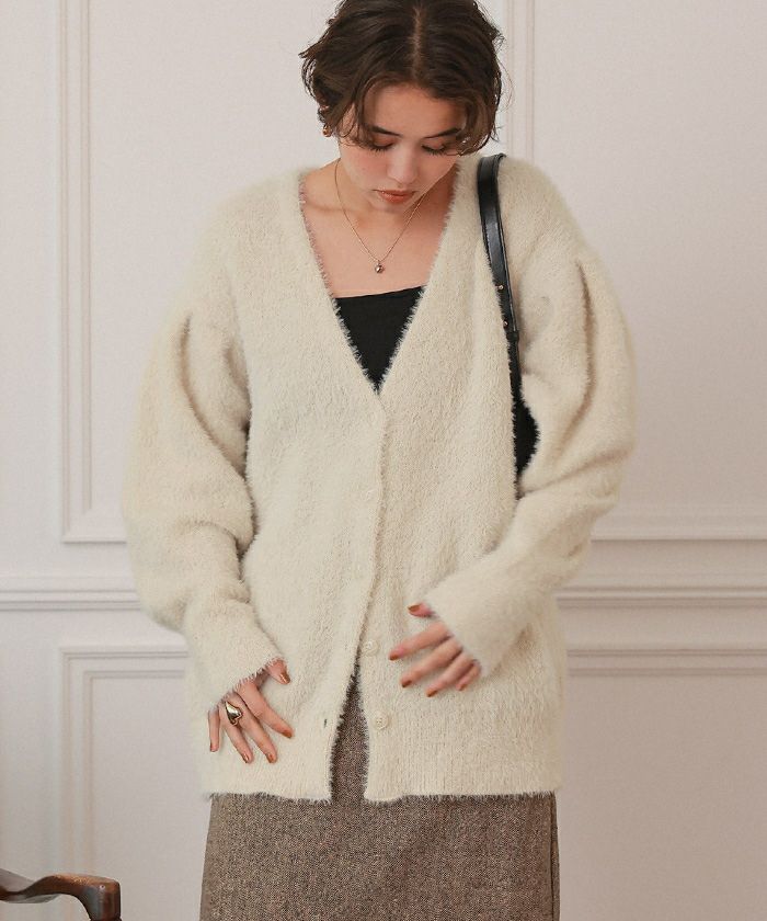 ミニシャギーニットカーディガン