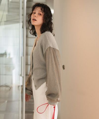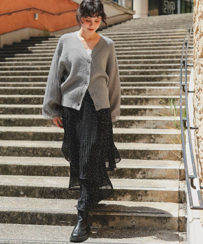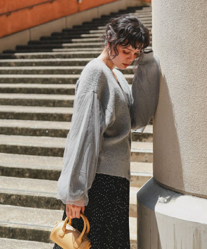 ・袖のチュール素材が大人可愛く、ボリュームスリーブなのでシルエットも女性らしい仕上がりになっています