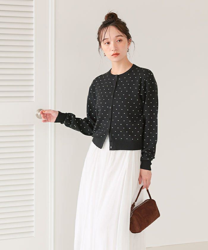 ・《甘すぎない“ドット柄”を、日常に》大人に似合うジャガードニットカーディガン