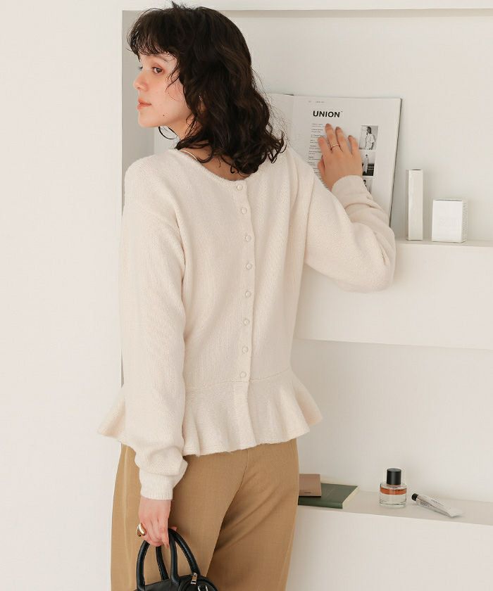 ・《1枚で2通りの着こなしが叶う》前後2wayで楽しめる裾フリルニットカーディガン