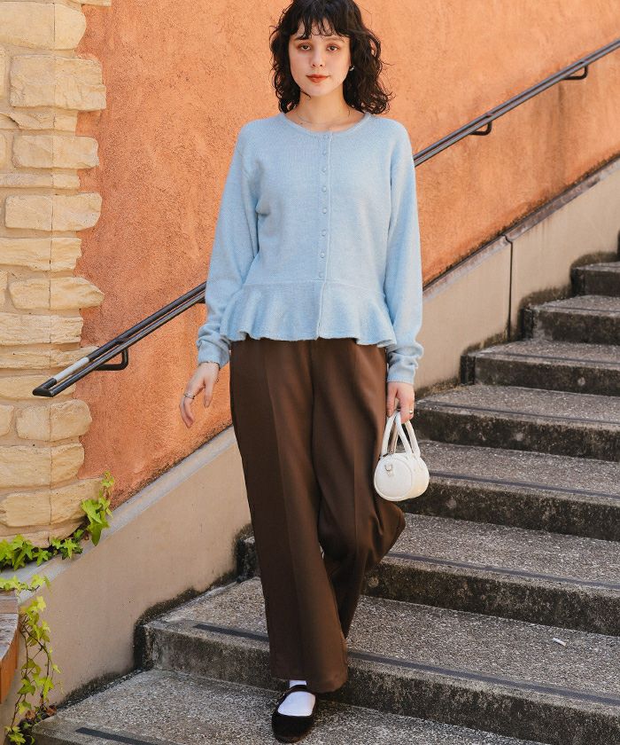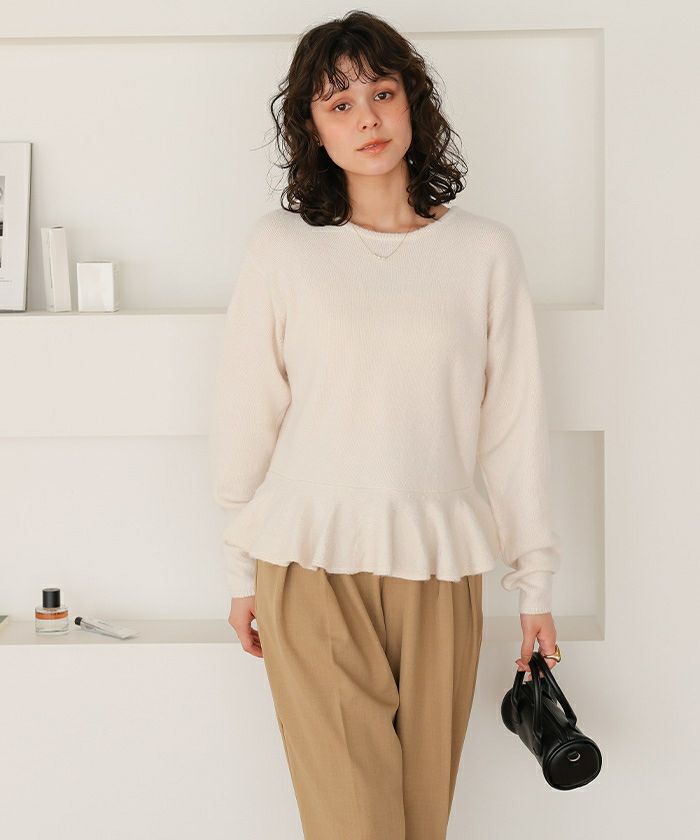 全体のシルエットはコンパクトで厚みもそこまでないので秋は主役トップスとして活躍させて季節が進んで重ね着にも対応できるアイテム。 フリルがポイントでかわいく着用できますが… 数回の着用で表面の毛玉が気になります…