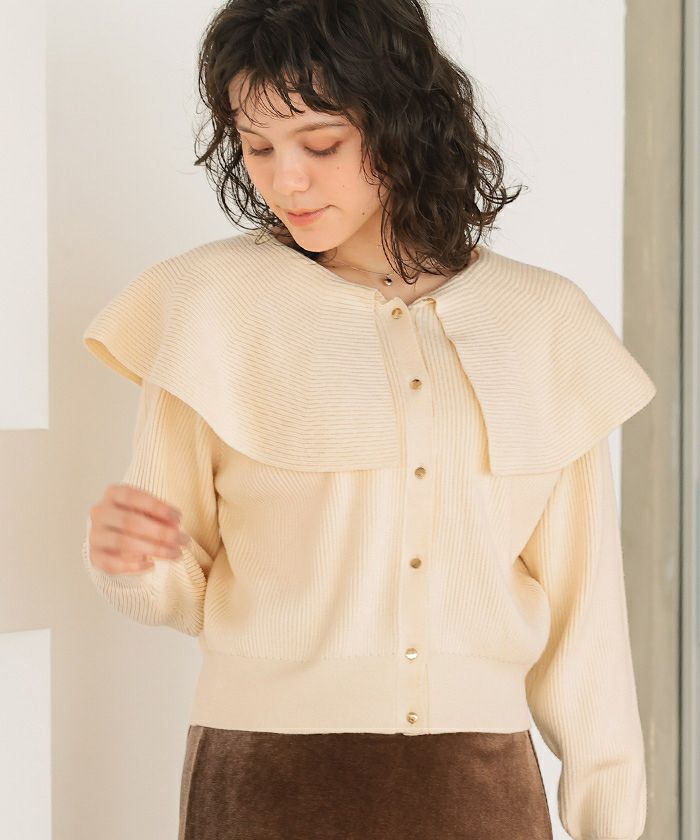 フレア襟ニットカーディガン/トップス