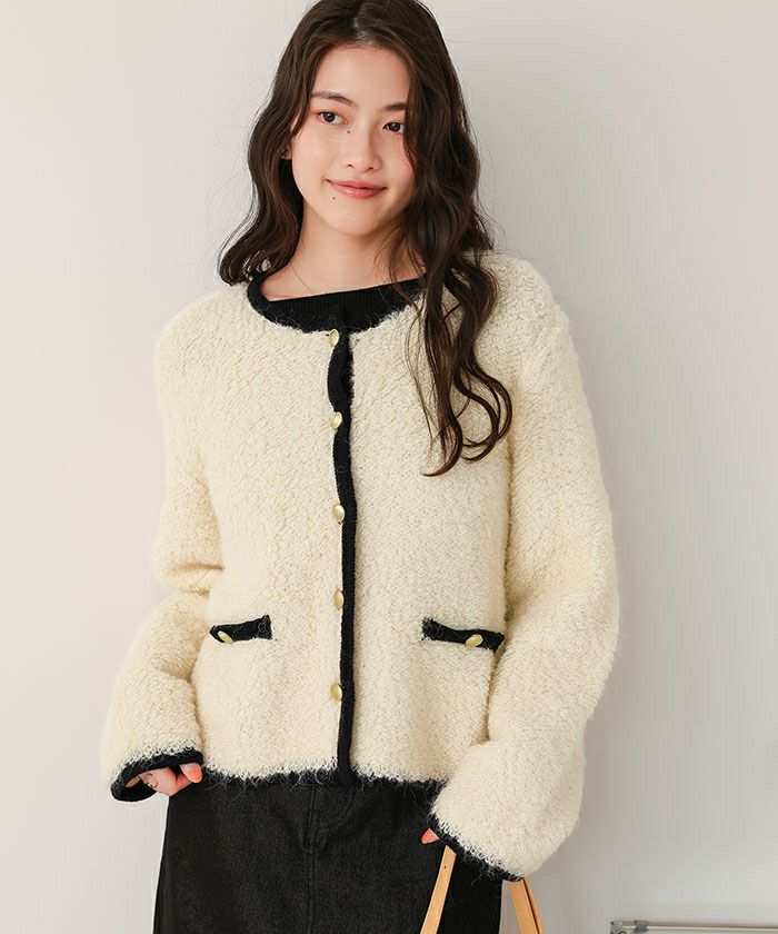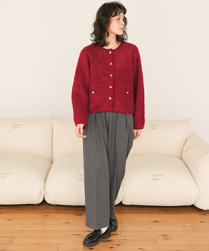 ・ツイード風に見える編み地が高見えさせてくれる