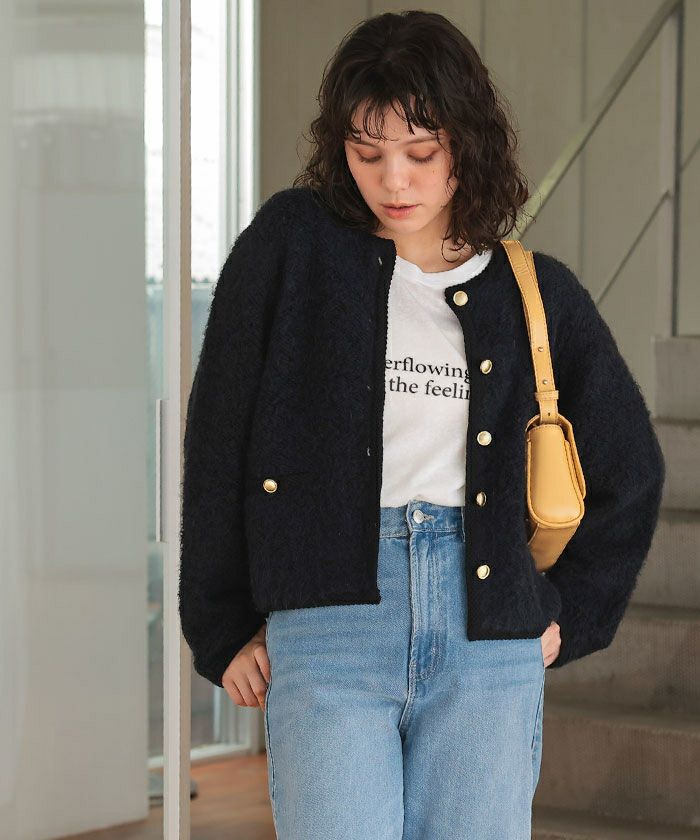 ・ジャケット風のデザインで、編み地もしっかりしてるのできちんと見せたいコーデにも使える
