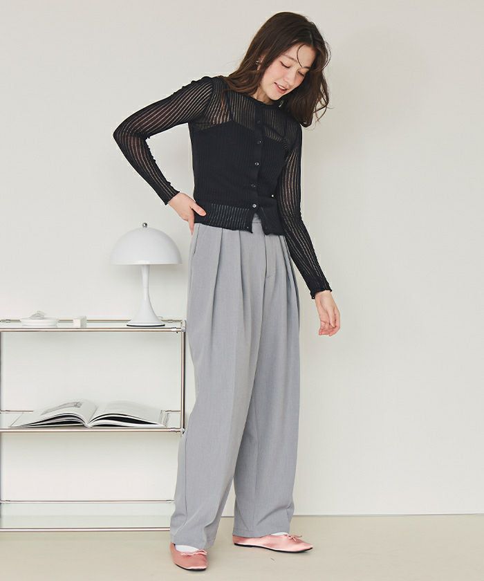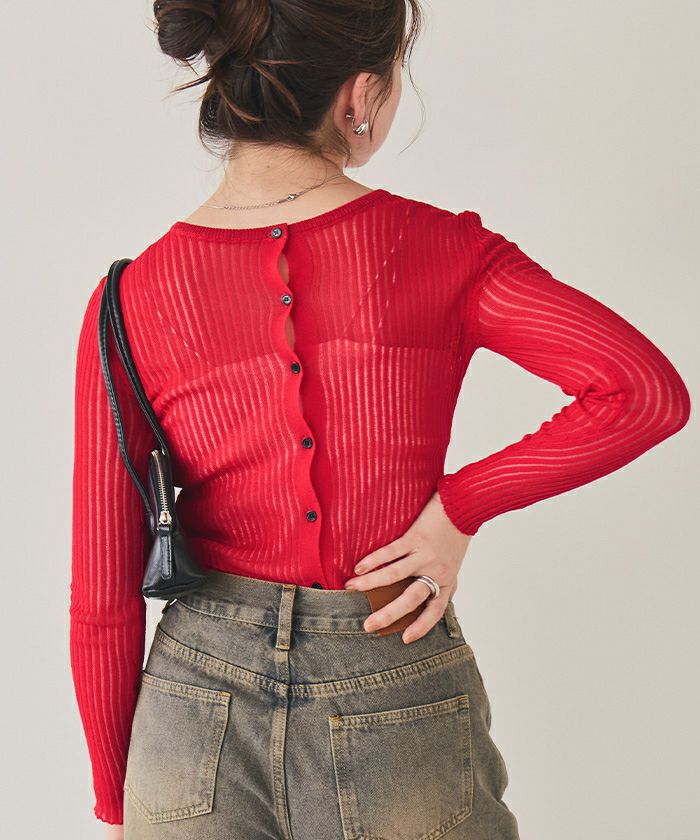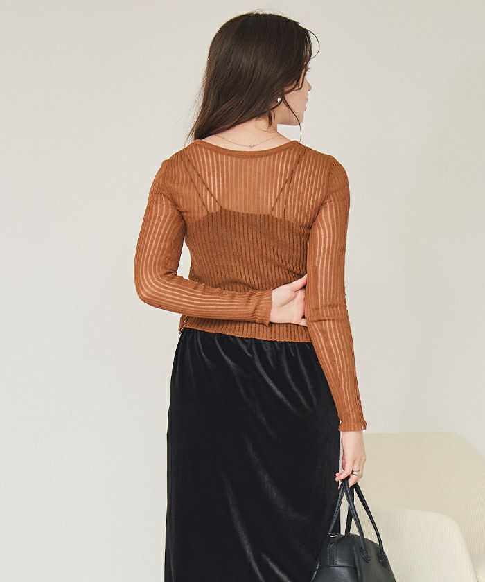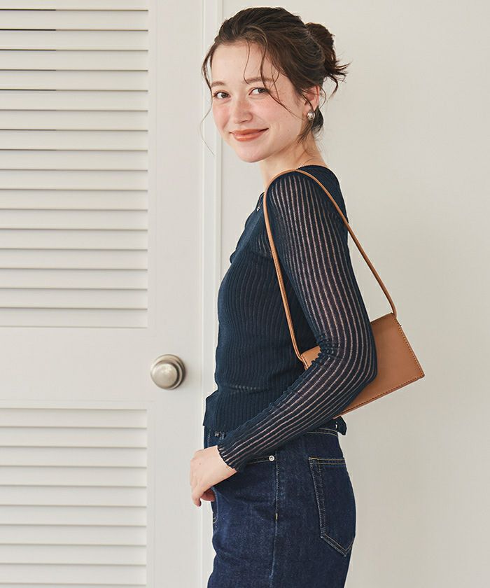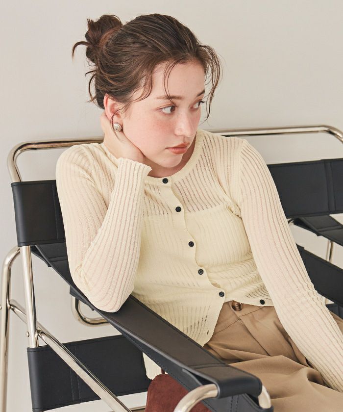 前後2wayウォッシャブルリブシアーニットカーディガン