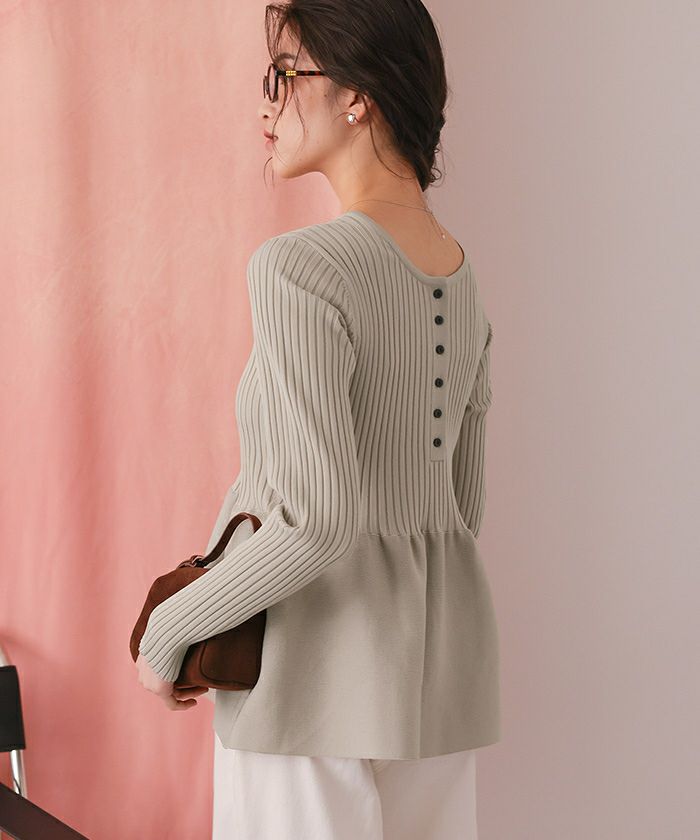 ・前後2wayで着用できる、ペプラムシルエットが女性らしいニットカーディガン