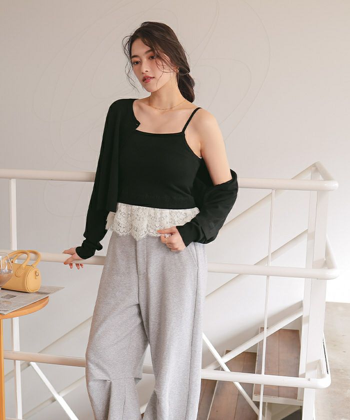 レースヘムキャミソール/カーディガンニットセット