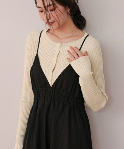 ミドル丈リブニットカーディガン