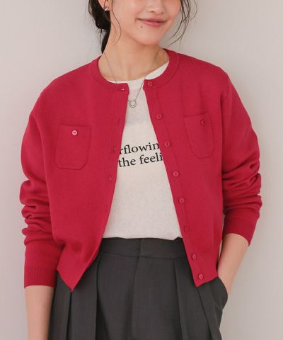 ・胸ポケットがアクセントになった、程よくカジュアルな抜け感カーディガン