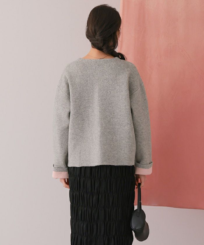 ・編地裏の配色カラーが目を惹く、大人のこなれ感漂うニットアウター