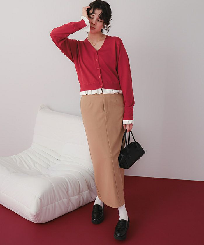 フリルシャツドッキングニットカーディガン