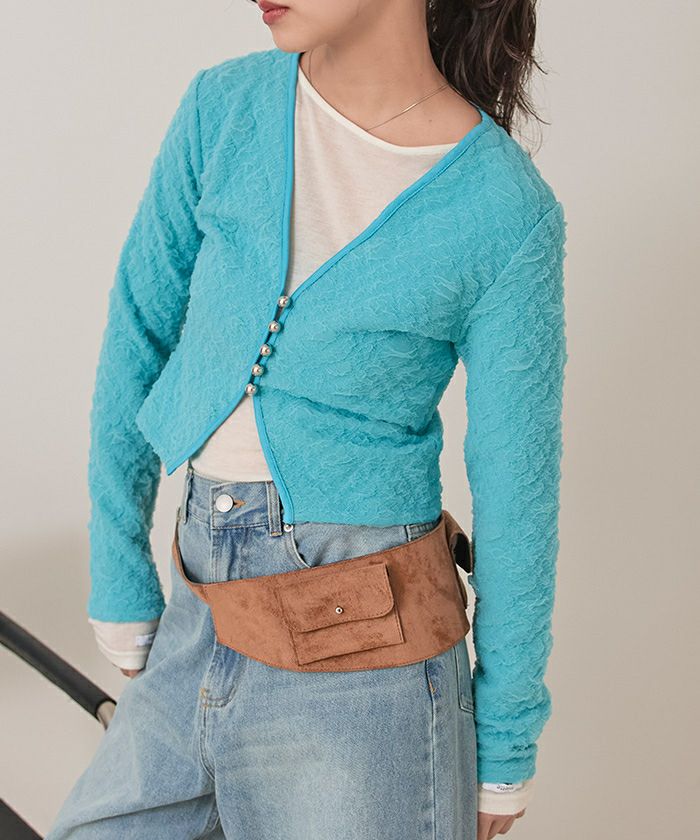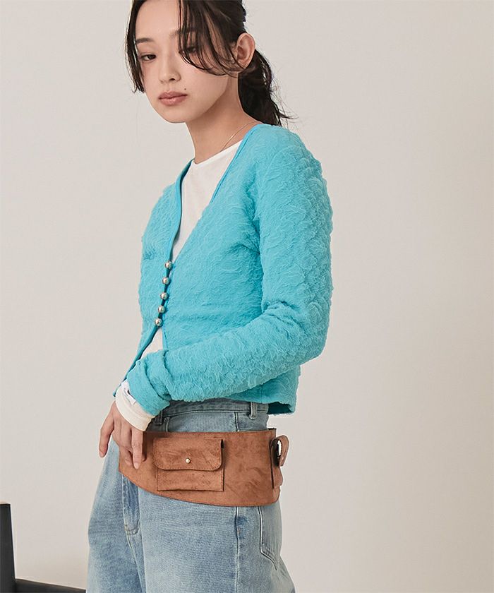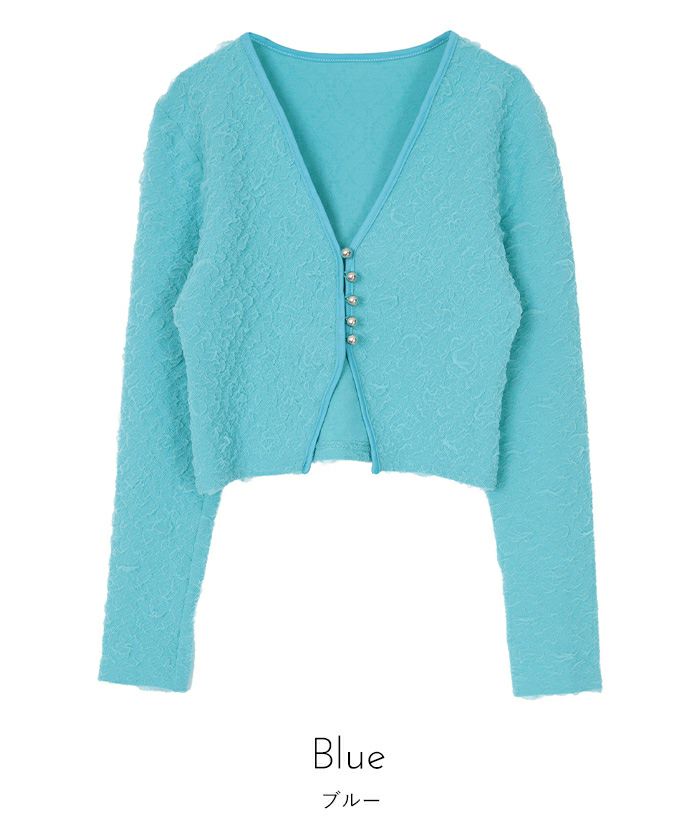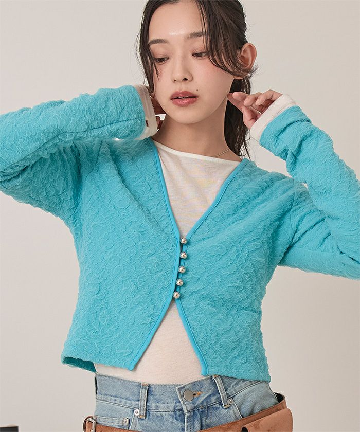 ・表面感がかわいいジャガードカットソー素材のカーディガン。