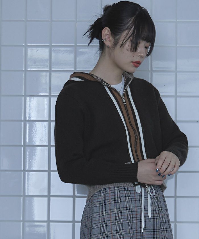 マルチカラーフード付きニットカーディガン【miette ミエット】